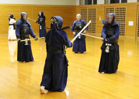 北部体育館剣道教室は、週に2回の稽古で1回の稽古時間は1時間強。稽古内容も基本を丁寧に指導していただけるということで、小学生の入門者にピッタリの教室です。また、後半の時間帯は経験や技量が様々な一般有段者が多数参加されているので、それぞれのレベルに合わせて各自のペースでできる自由稽古の時間が多く割かれているのが特徴です。中学生も一般有段者と稽古ができるため、部活動での稽古を補助する目的で参加されている生徒さんが多いようです。